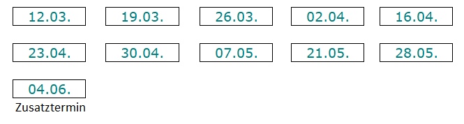 Donnerstag: 16:45-17:45 Uhr